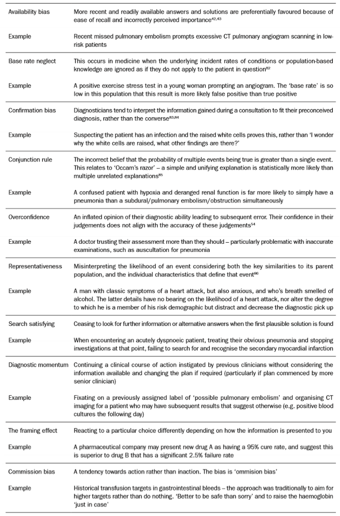 O’Sullivan ED, Schofield SJ. Cognitive bias in clinical medicine. J R Coll Physicians Edinb. 2018 Sep;48(3):225-232. doi: 10.4997/JRCPE.2018.306. PMID: 30191910.